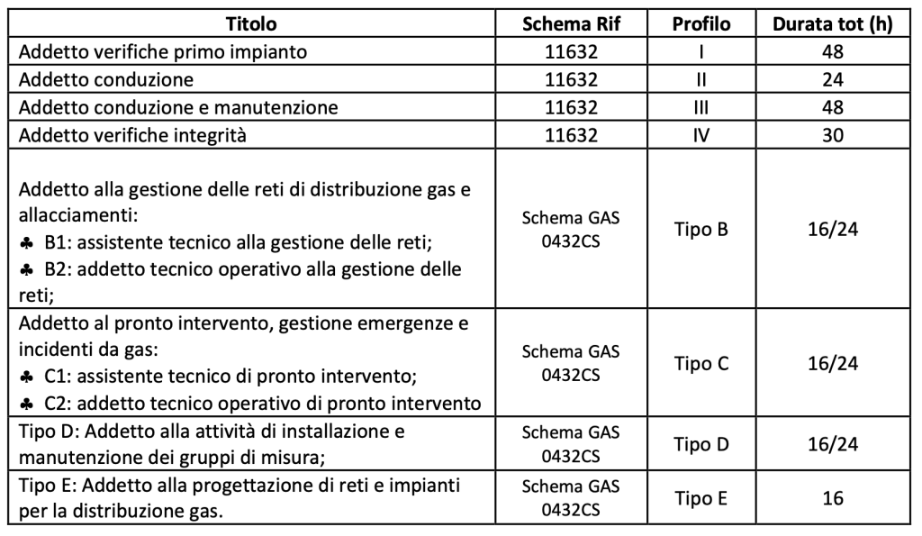 - Schema 0432CS – Operatore nel settore della Distribuzione Gas